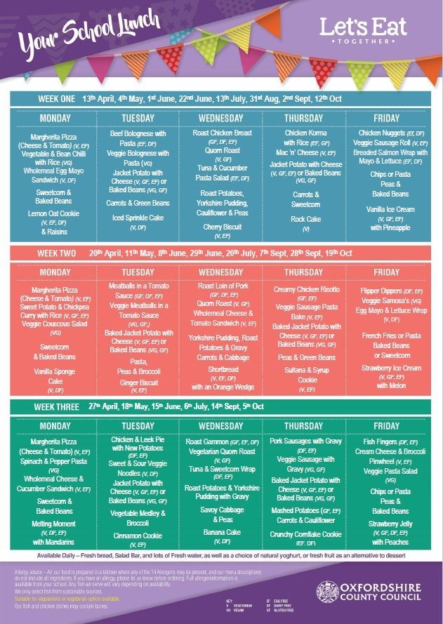 The menu operates on a 3 week cycle but may be changed to accommodate special days. This will be notified in advance.