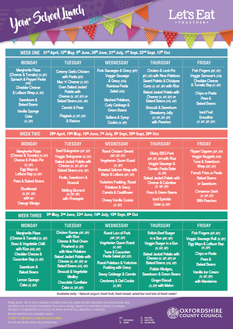 The menu operates on a 3 week cycle but may be changed to accommodate special days. This will be notified in advance.